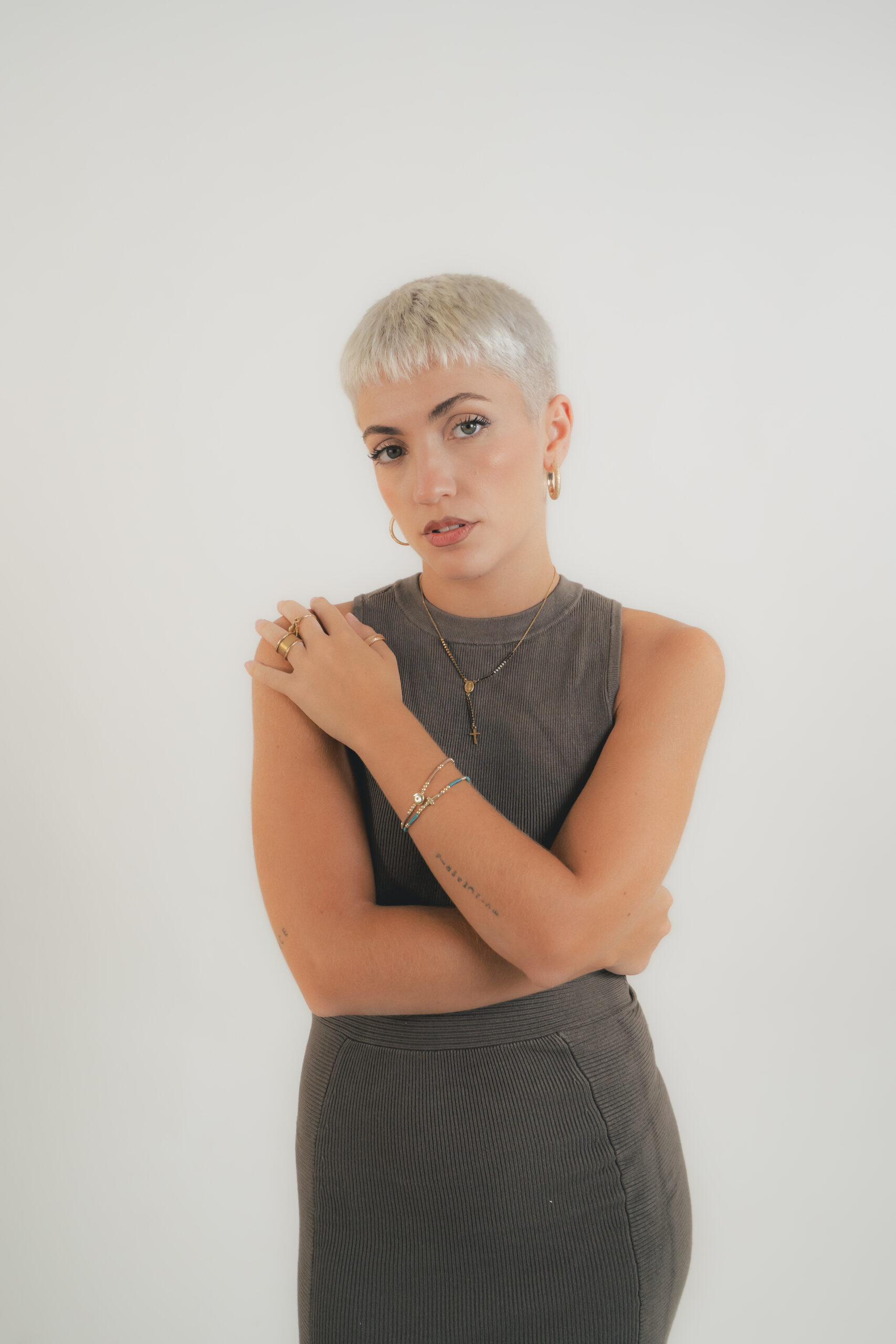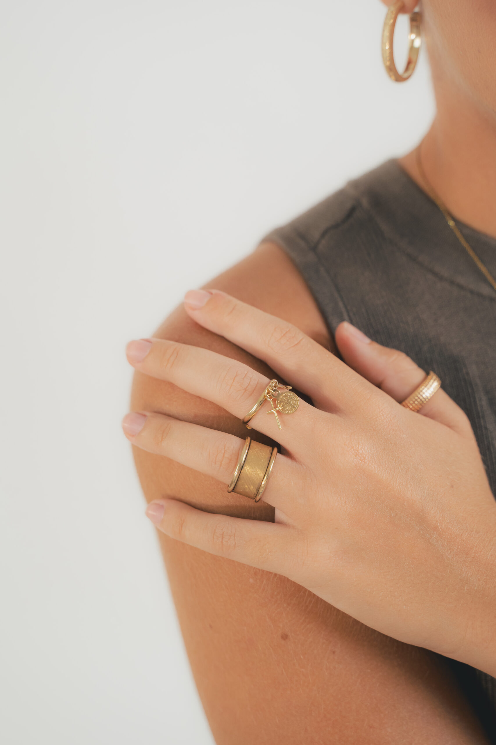 Aliança ample de plata daurada, d’estil modern i atemporal. Una peça senzilla i elegant, ideal per portar sola o combinada amb altres joies.
