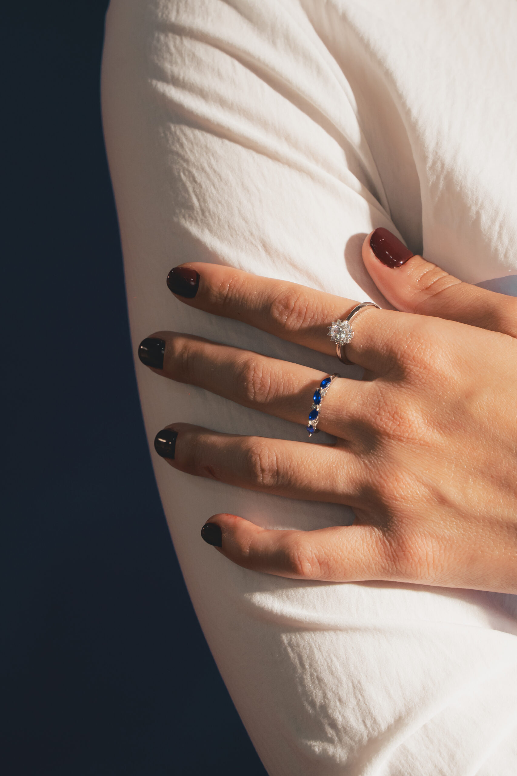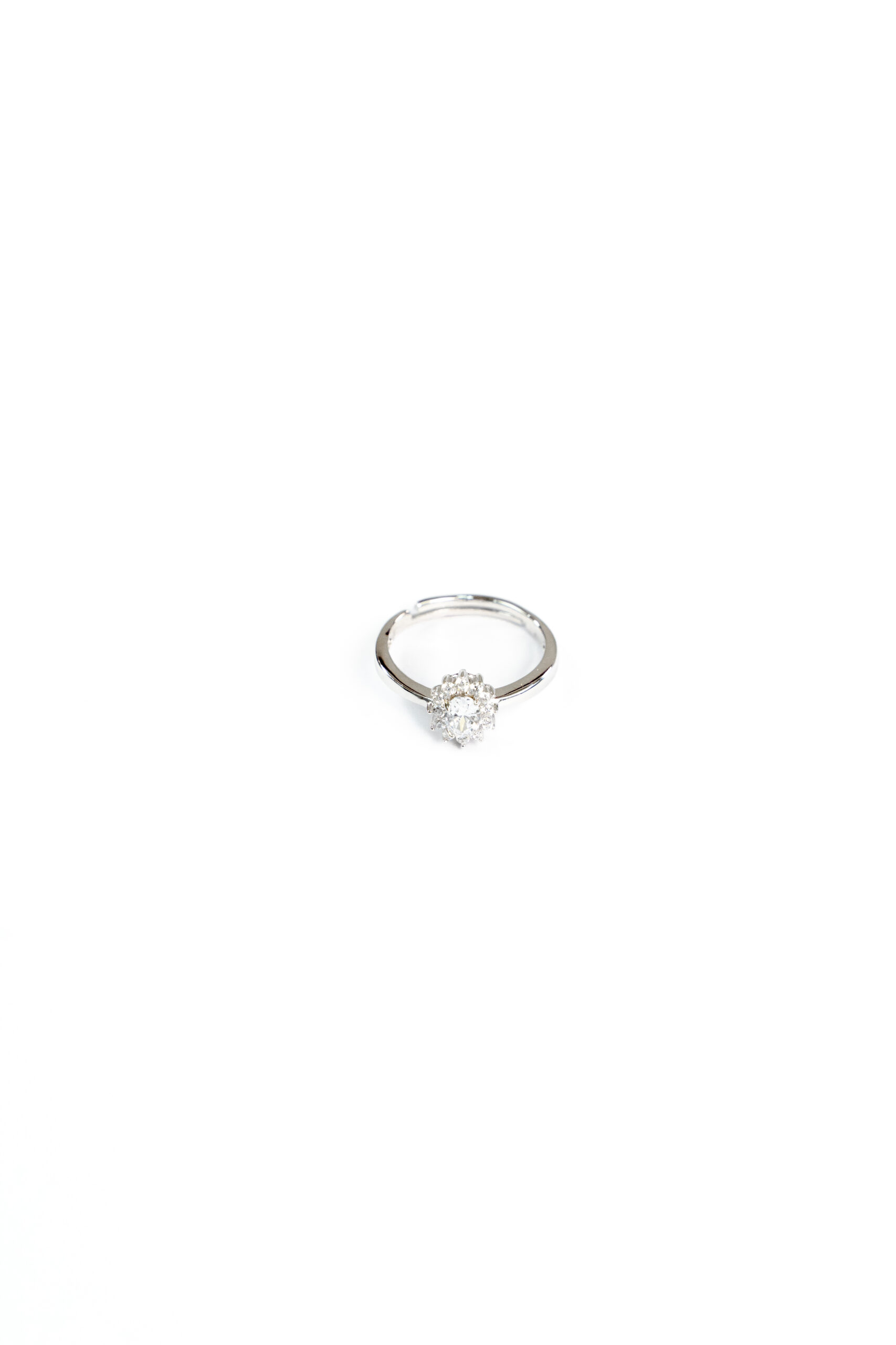 Rosetó de plata amb circonita central, que destaca per la seva brillantor i elegància clàssica.