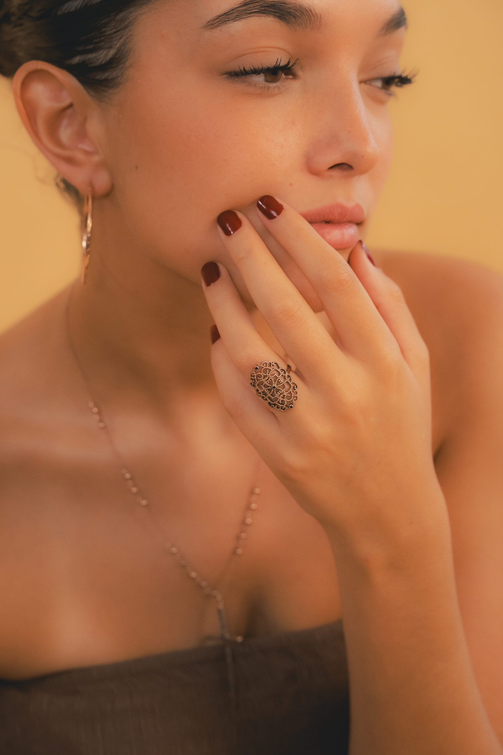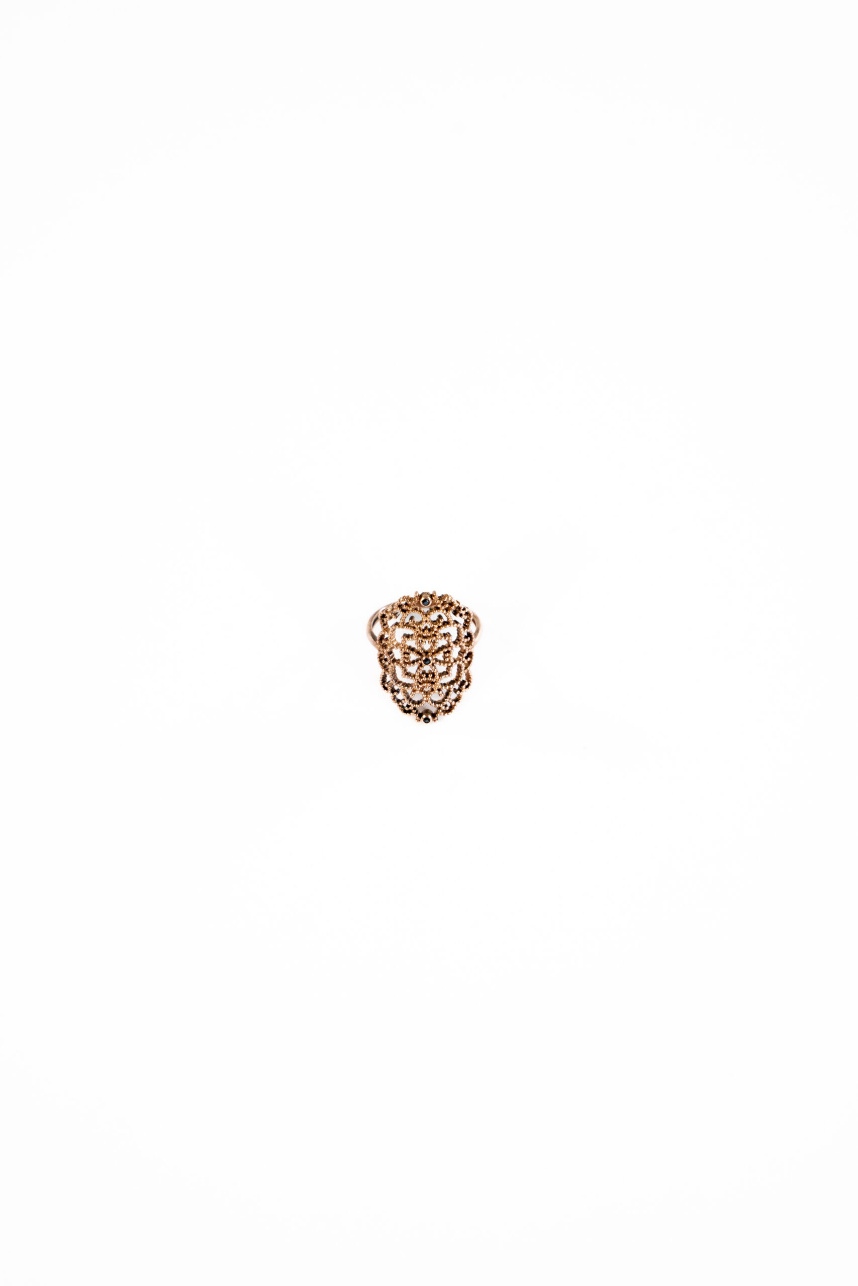 Anell de plata rosa amb circonites negres, que crea un contrast en forma d’aranya.
