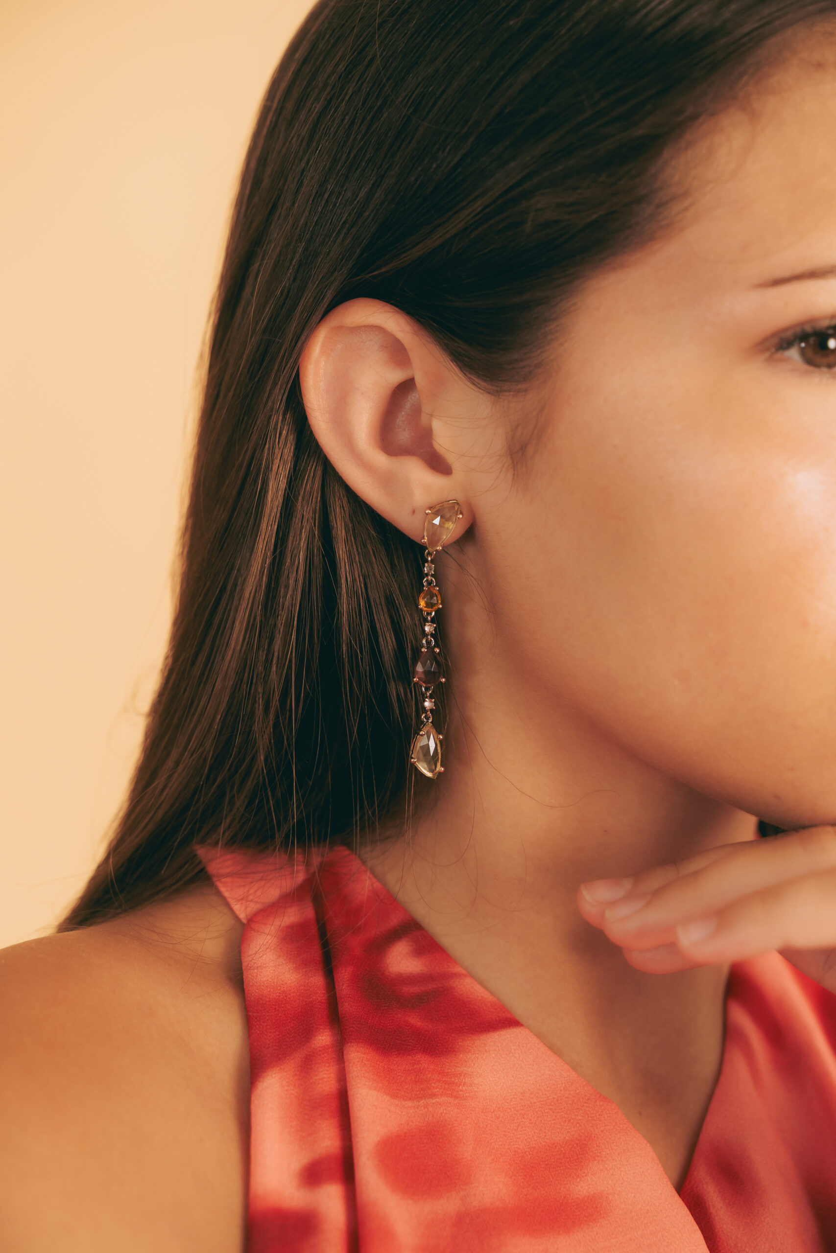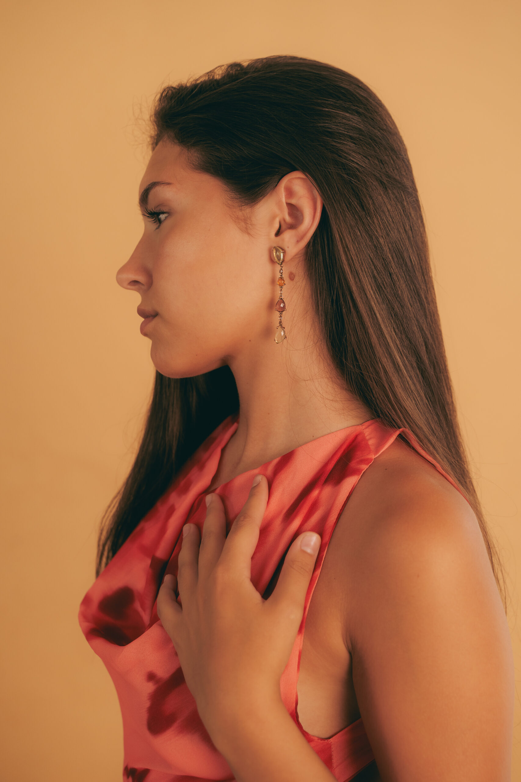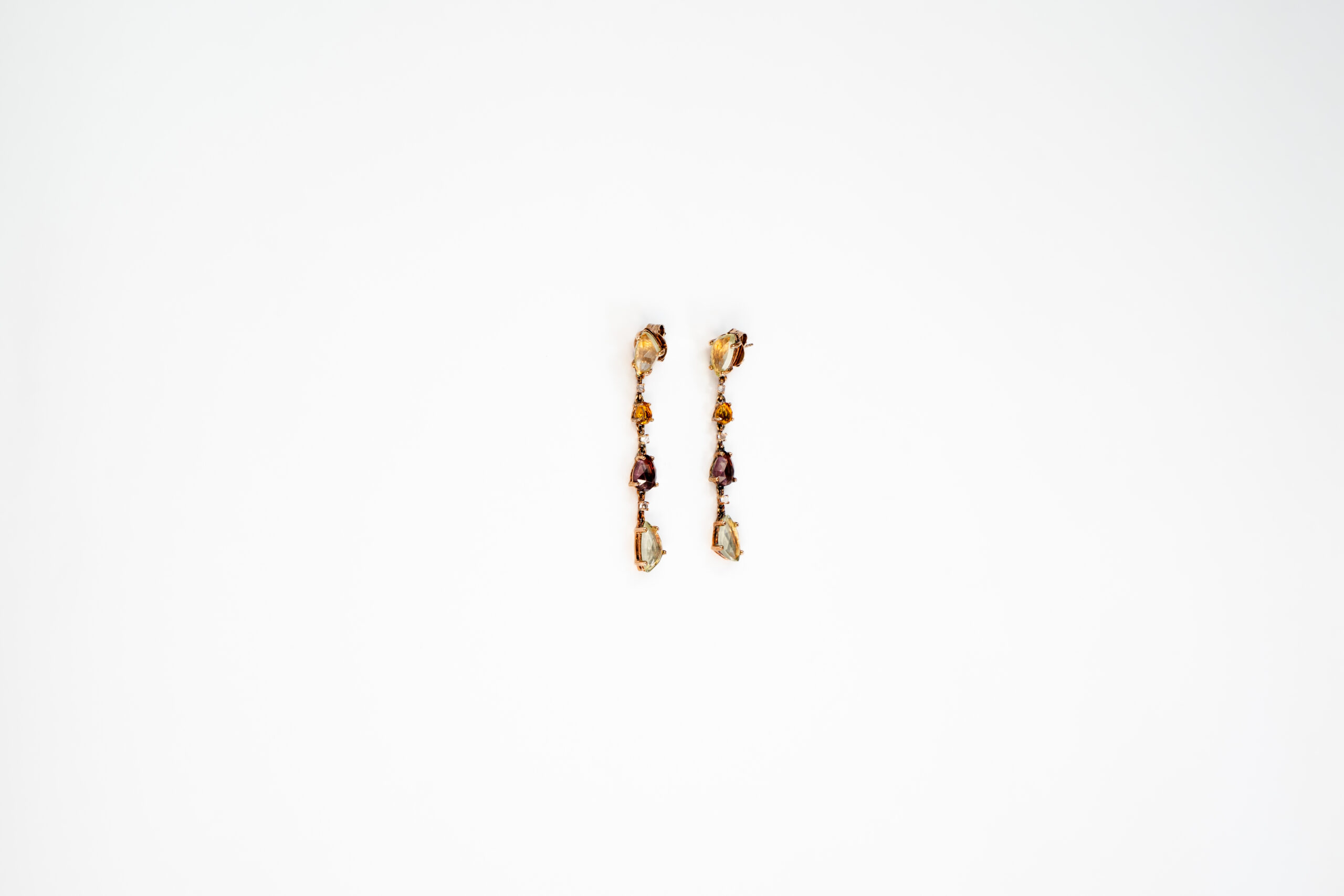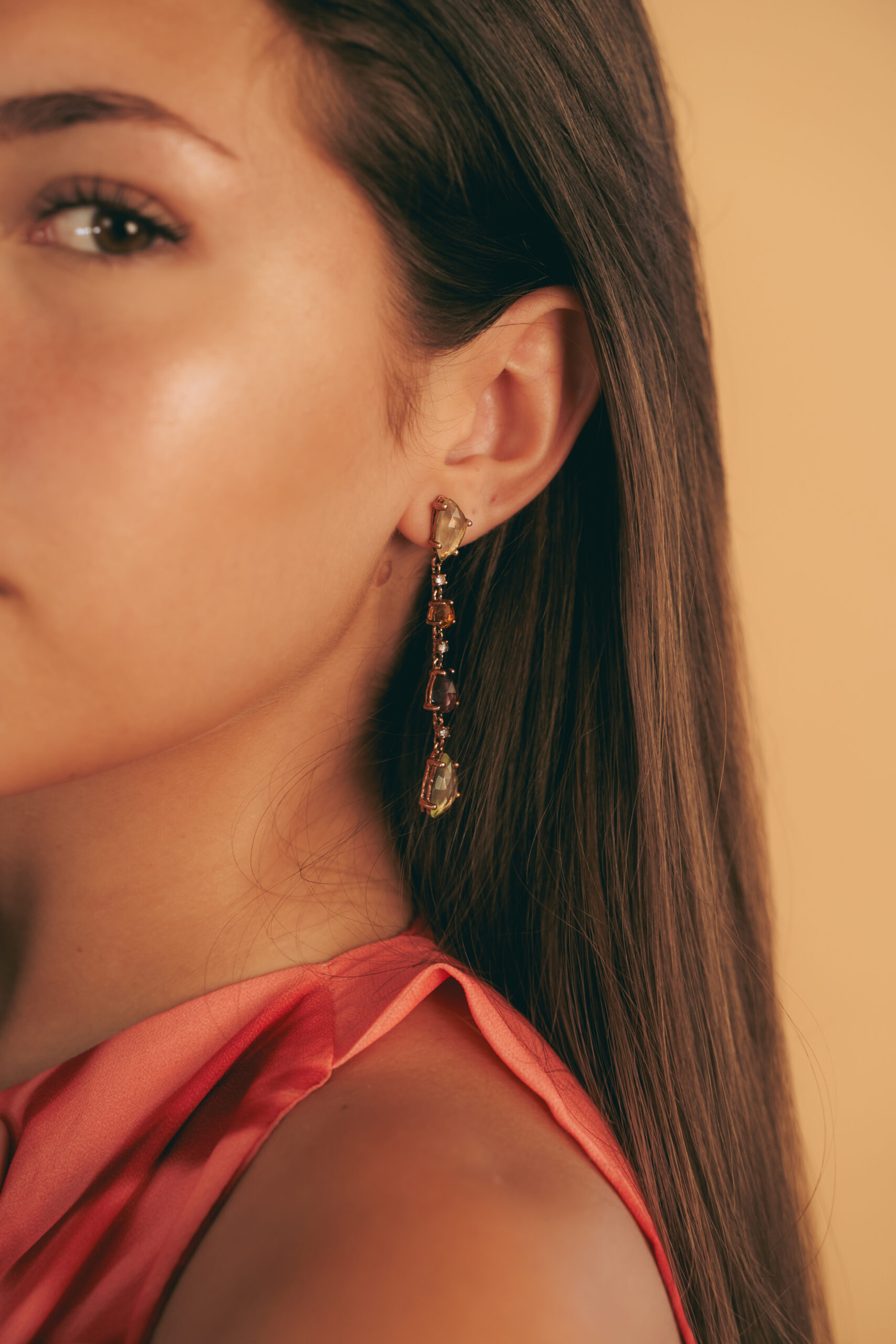 Arracades de plata rosa amb circonites de diferents colors, inspirades en els tons vius de l’estiu. Una peça alegre, lluminosa i plena d’estil.