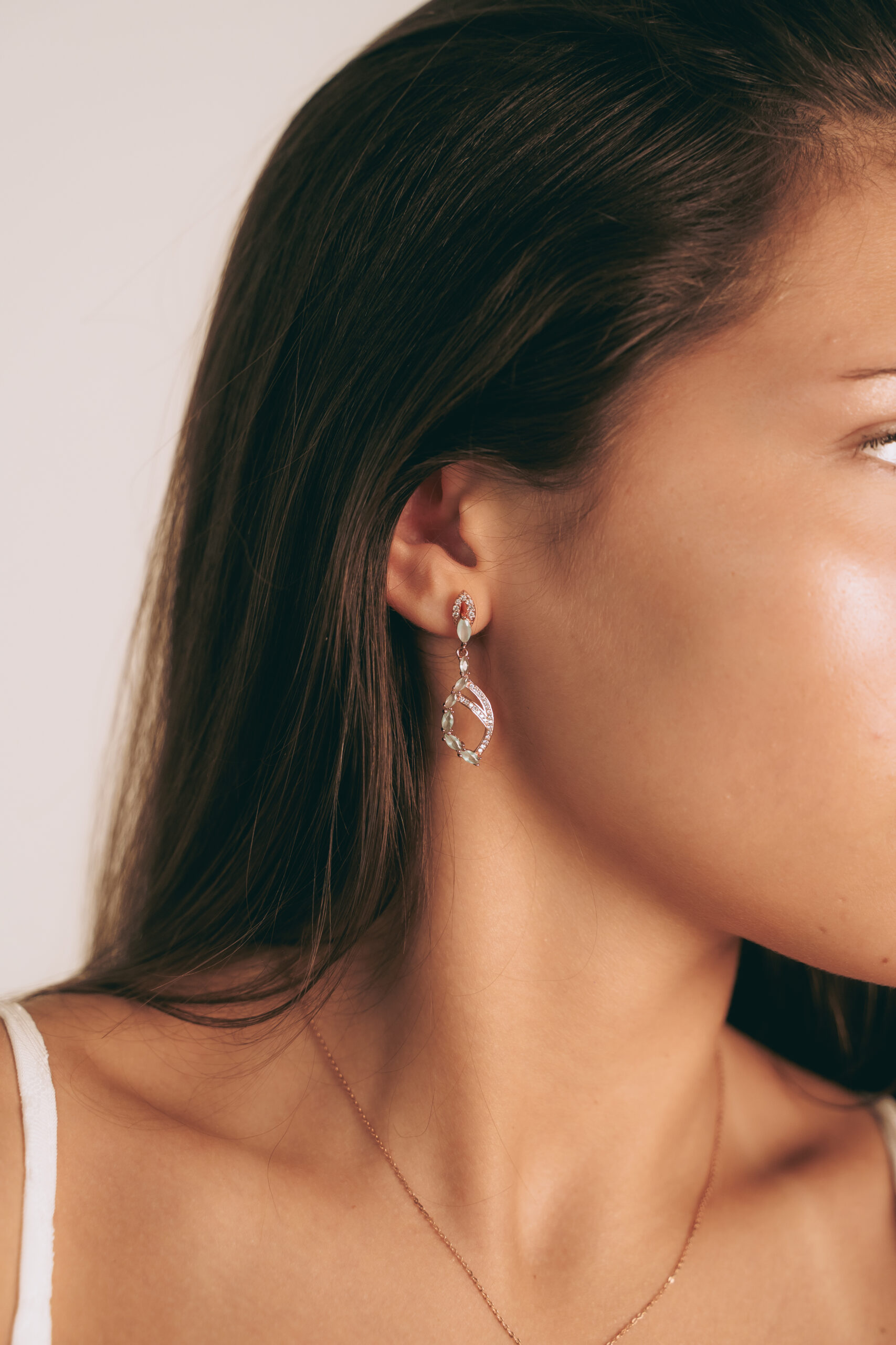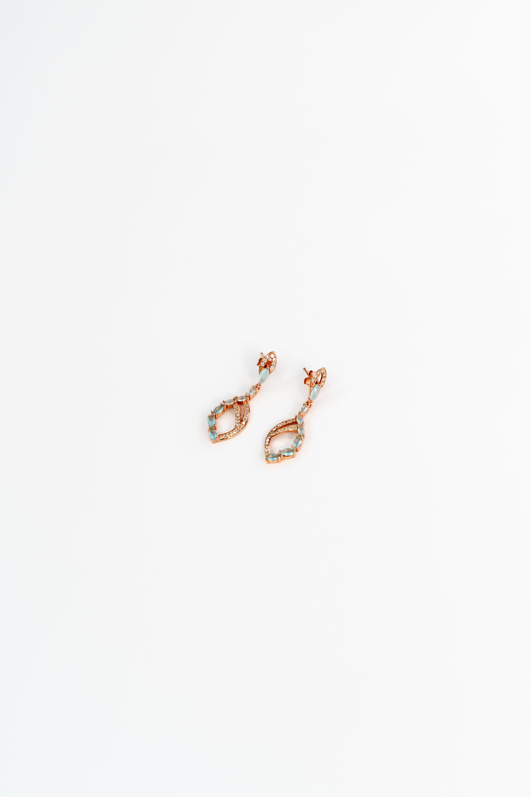 Arracades de plata rosa amb circonites blaves i blanques, que creen un contrast suau i lluminós. Una peça femenina i refinada, ideal per a qualsevol ocasió.