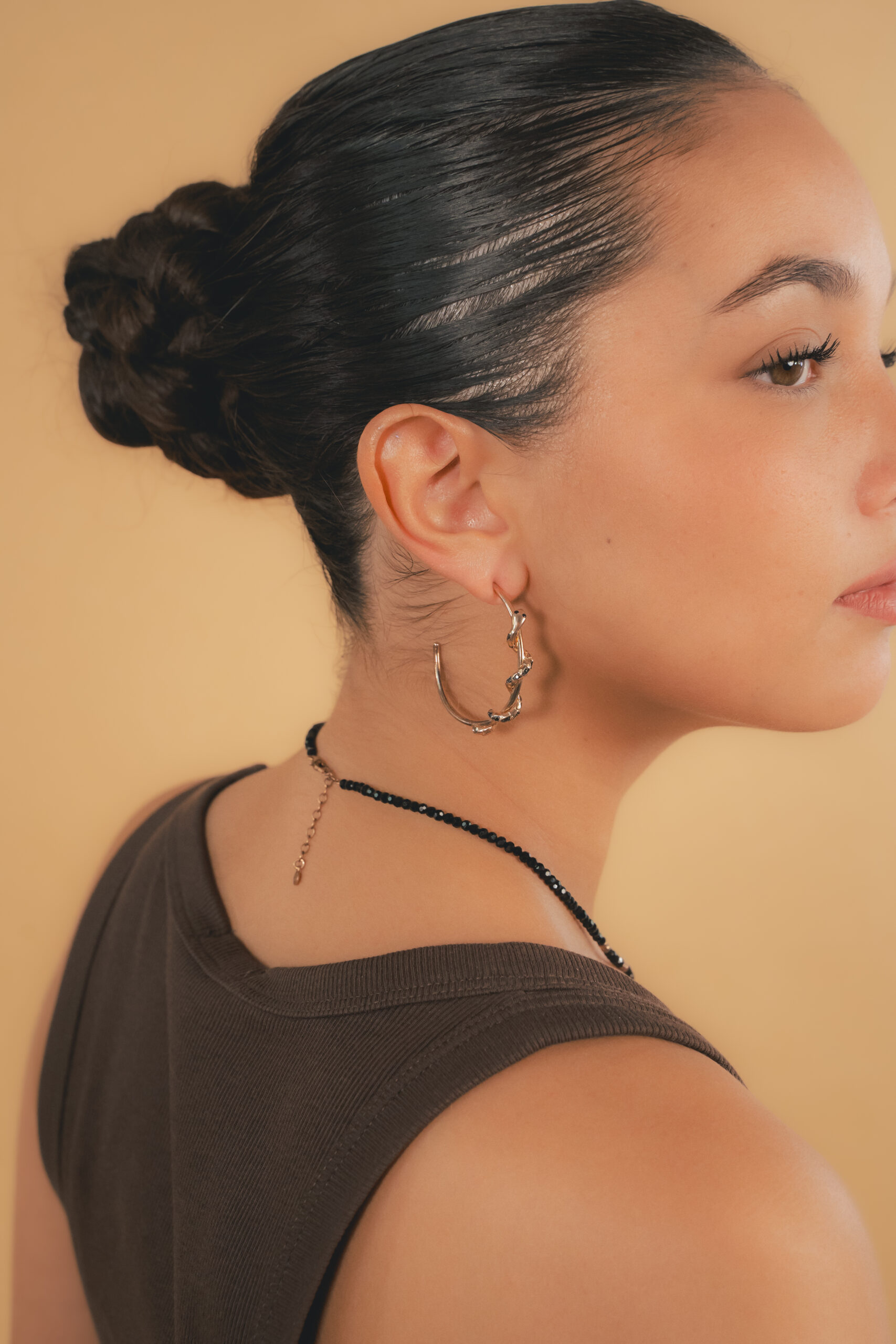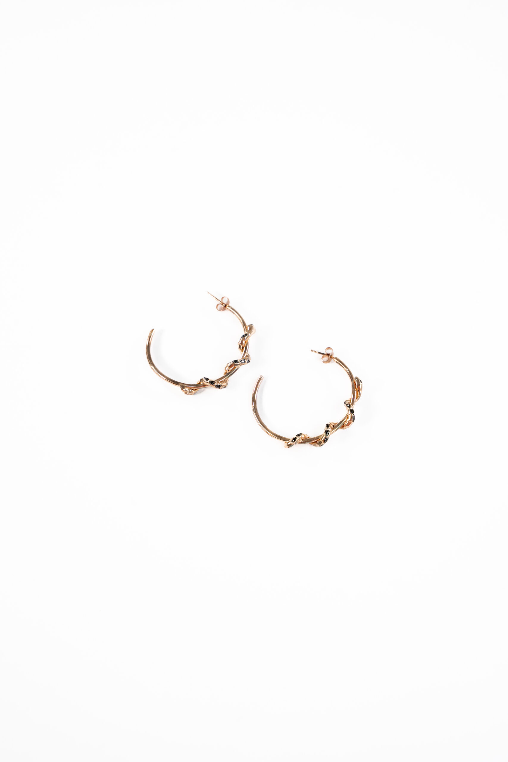 Criolles de plata rosada amb silueta de serp decorada amb circonita negra. Una peça atrevida i sofisticada, que combina elegància i caràcter.
