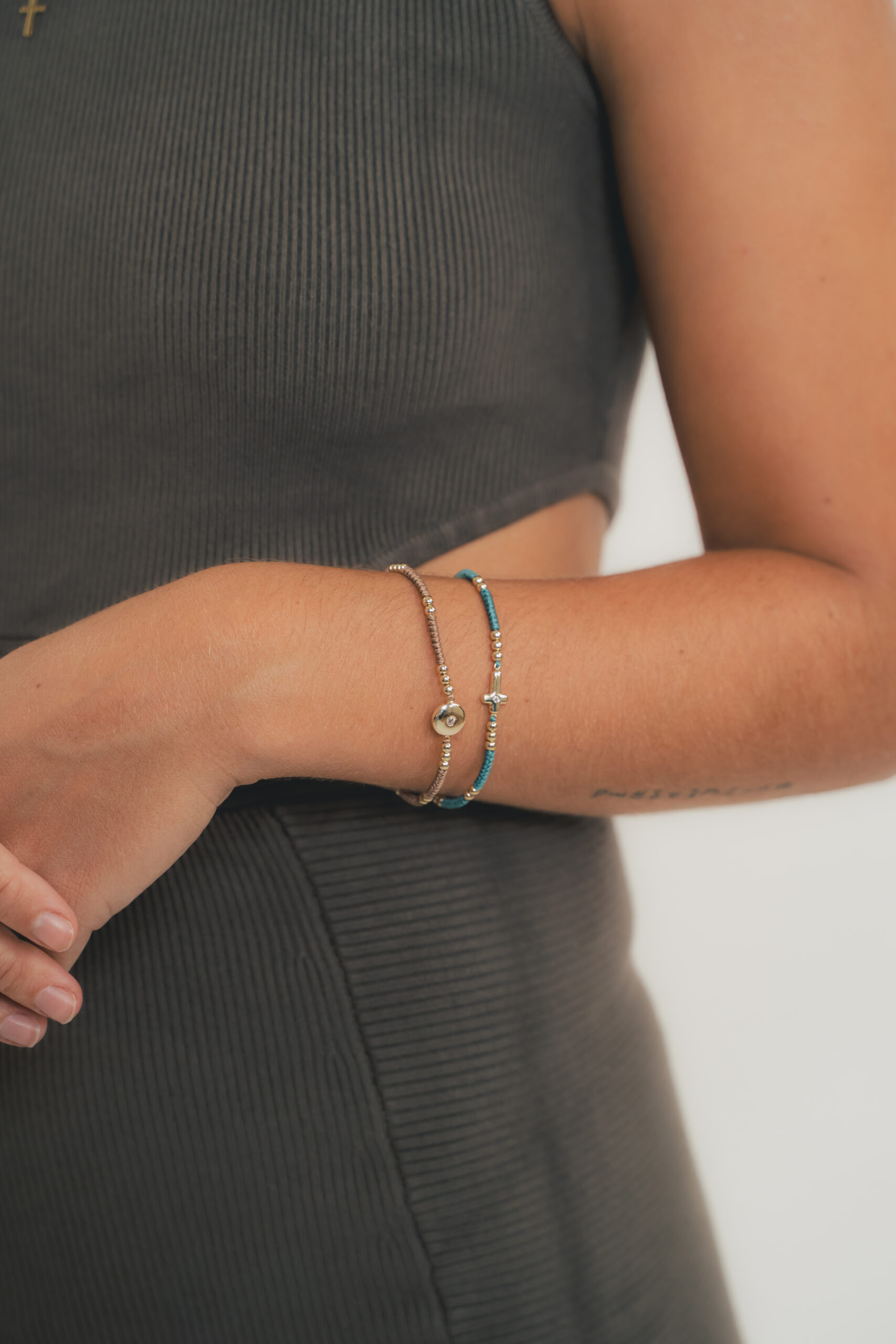 Braçalet de macramé amb de colors en penjoll de plata, que combina estil artesanal i simbolisme. Una peça senzilla i significativa, ideal per al dia a dia.