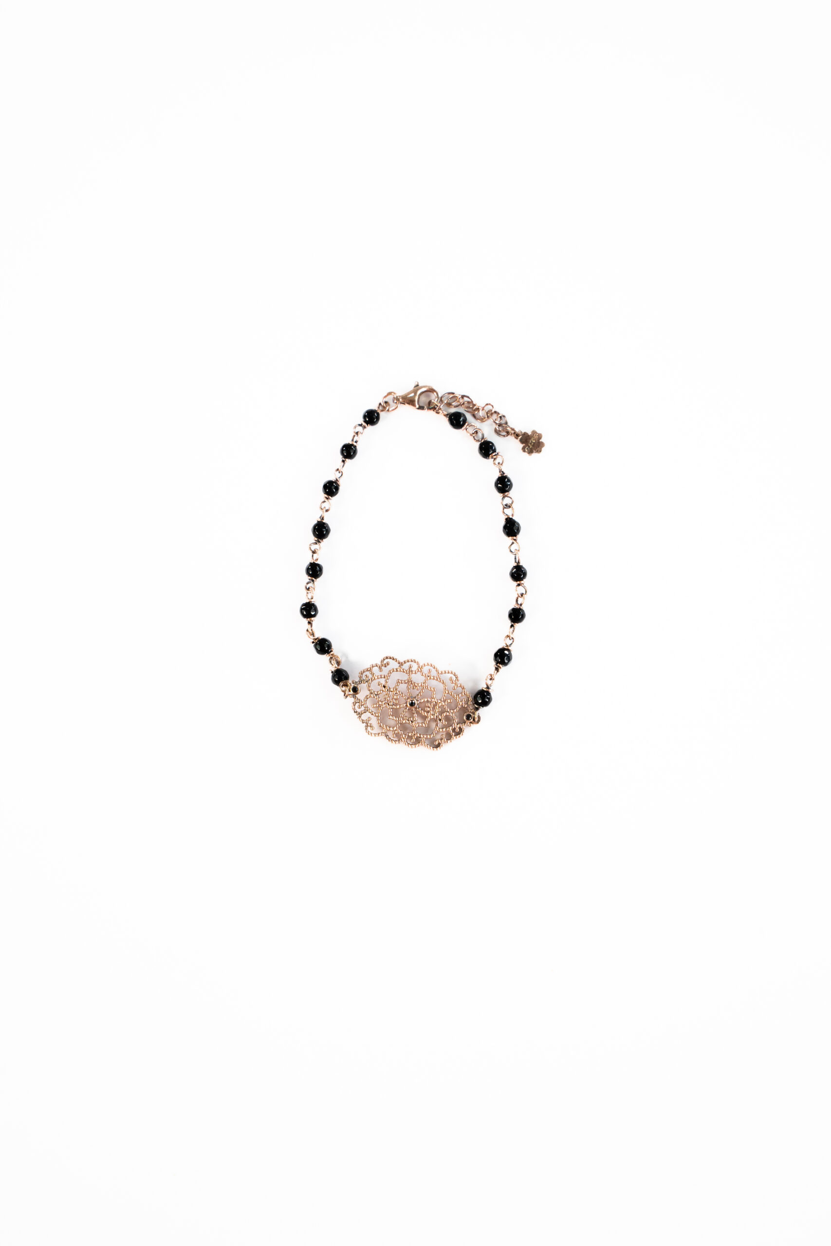 Braçalet rosari amb penjoll decorat amb silueta d’aranya i circonites.