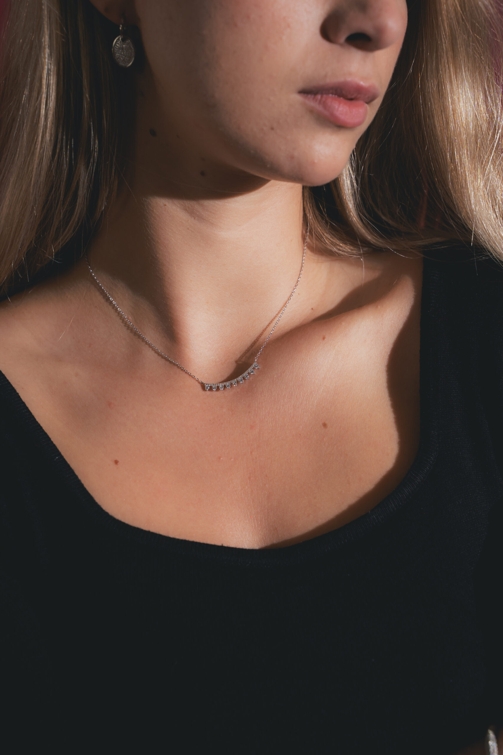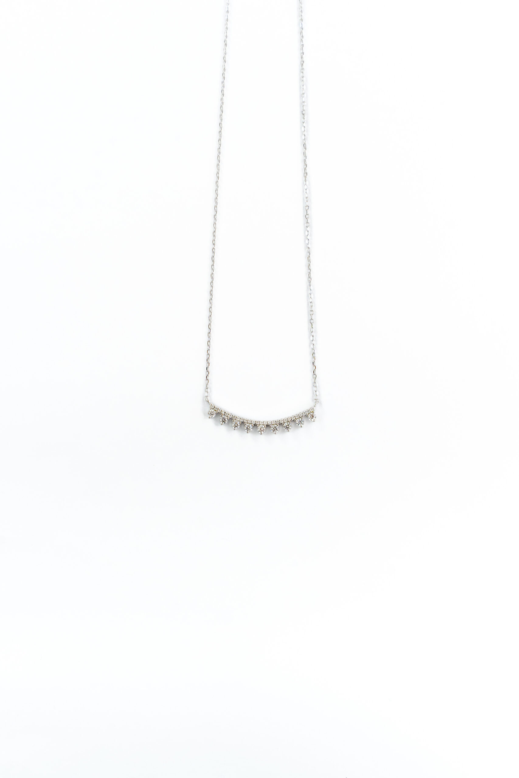 Collaret de plata amb penjoll allargat de multicirconites blanques, ideal per ocasions especials.