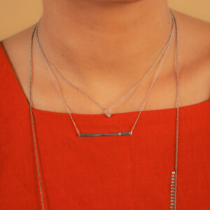 Collar de plata rosa amb detalls en tres colors, que aporten llum, harmonia i un toc modern. Una peça versàtil i refinada, ideal per a qualsevol ocasió.