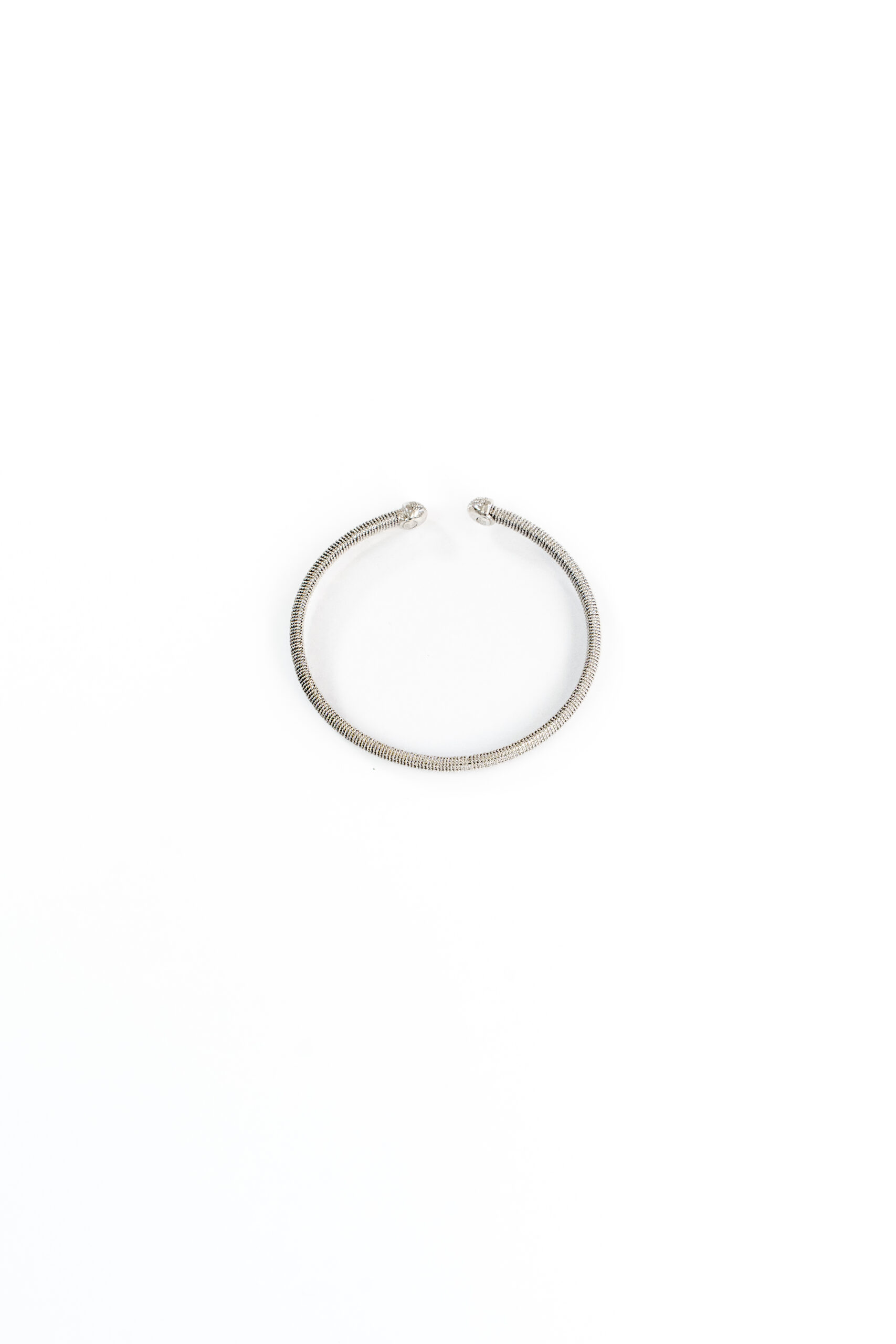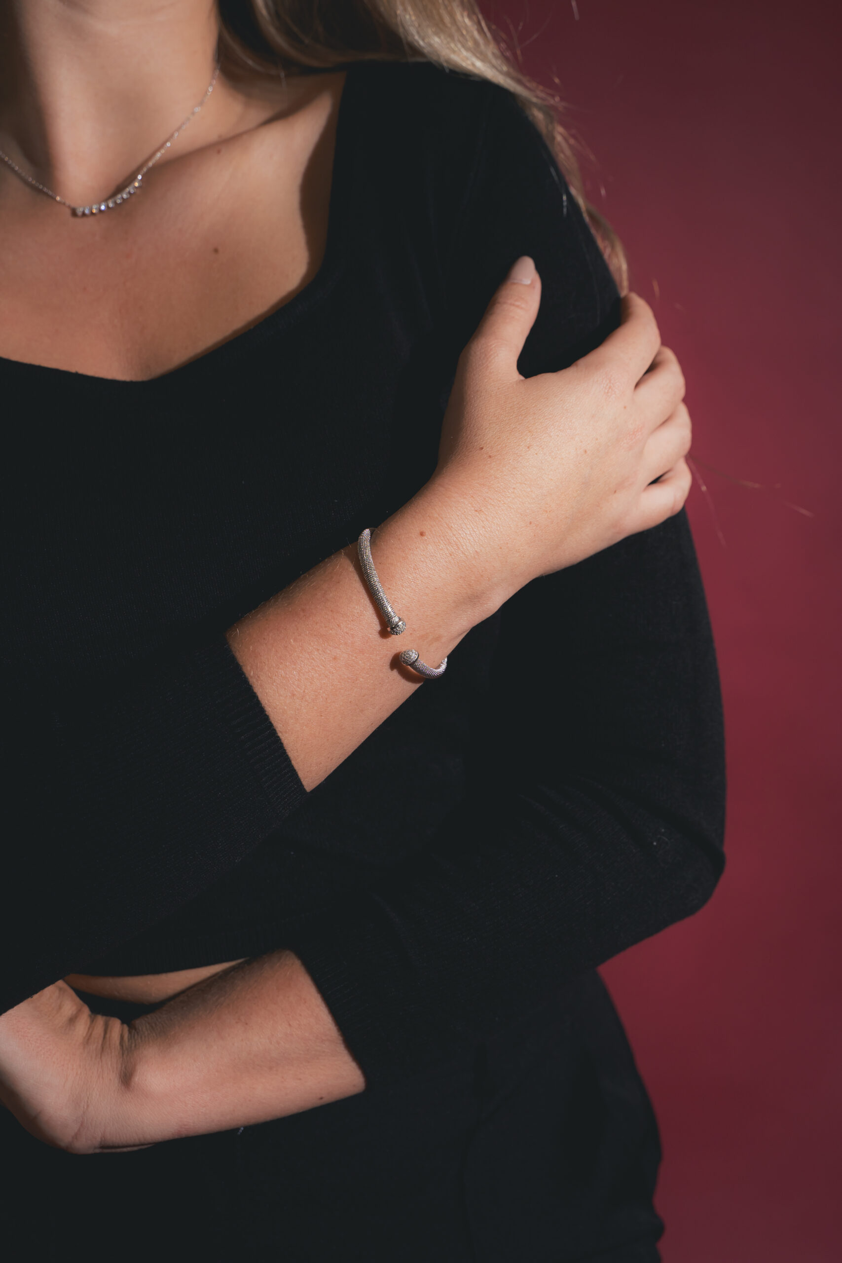 Esclava oberta de plata amb circonites a les puntes, que combina simplicitat i brillantor en un disseny modern i sofisticat.